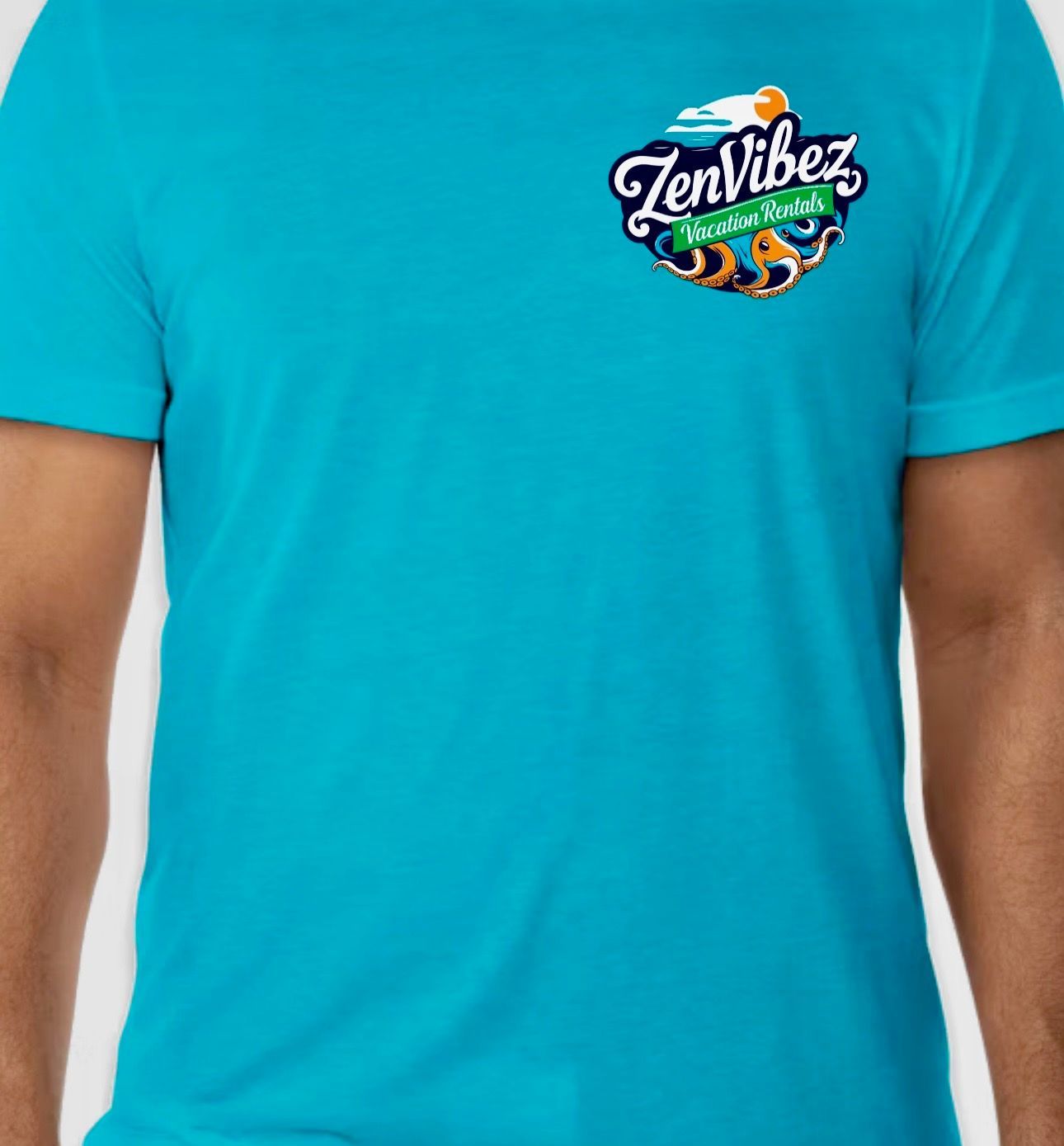 Show your ZenVibez pride in style with our signature Tri-Blend Aqua Tee — the perfect blend of comfort, coastal energy, and purpose. This soft, lightweight shirt features our ZenVibez Vacation Rentals logo on the front and a bold, beach-inspired octopus design on the back, reminding everyone to stay cool, calm, and coastal.